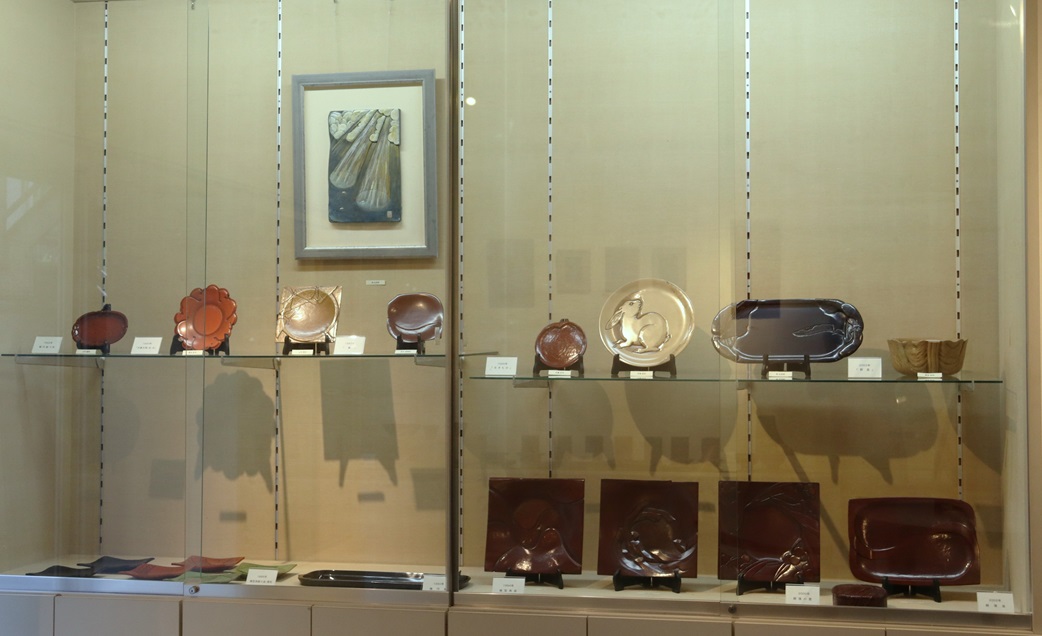 この度の展覧会では、1974年に始まり今年で54回目を迎える鎌倉彫教授会創作展を振り返り、歴代の鎌倉彫後藤会出品作品の中から、後藤尚子会長が選出した秀作を展示しております。毎年開催される鎌倉彫教授会創作展は、会に所属する独立会が参加し、年ごとのテーマに沿った創作作品を一堂に展示する恒例の作品展です。木を彫り漆を塗る鎌倉彫作品の多様さ、作者の想いのこもった表現を歴史を追いながらご覧いただけますと幸いです。