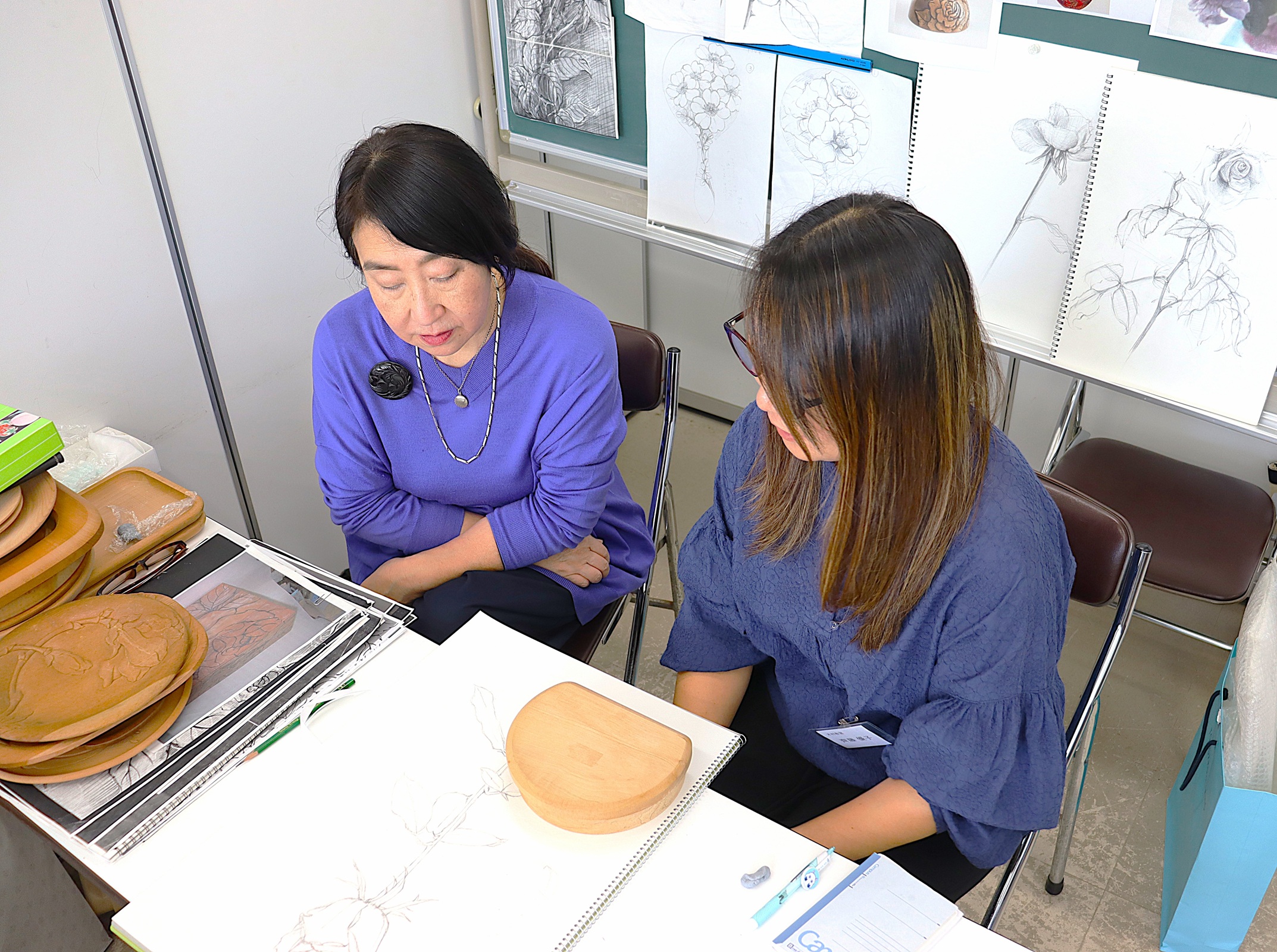 会長講座「薔薇のデッサンから図案、彫りへ」第一回目開講 投稿日: 2025年11月17日 投稿者: gotohkai 後藤尚子会長の直接指導による「薔薇のデッサンから図案、彫りへ」全三回講座が鎌倉彫会館にて開講されました。 第一回目11月17日㈪は<薔薇のデッサン>。デッサンをしたり、鎌倉彫後藤会の図案や彫り見本・会長のデザインを参考に構図を考えたりいたしました。 Tweet
