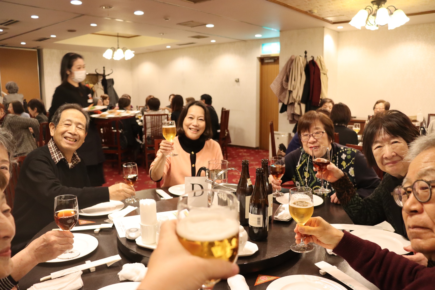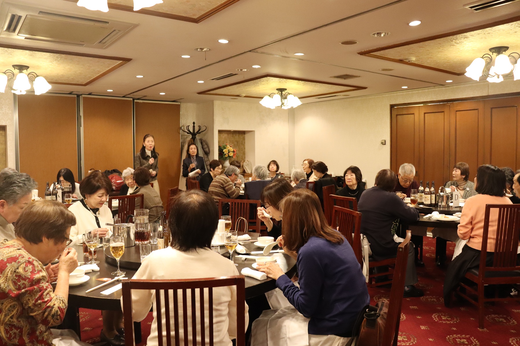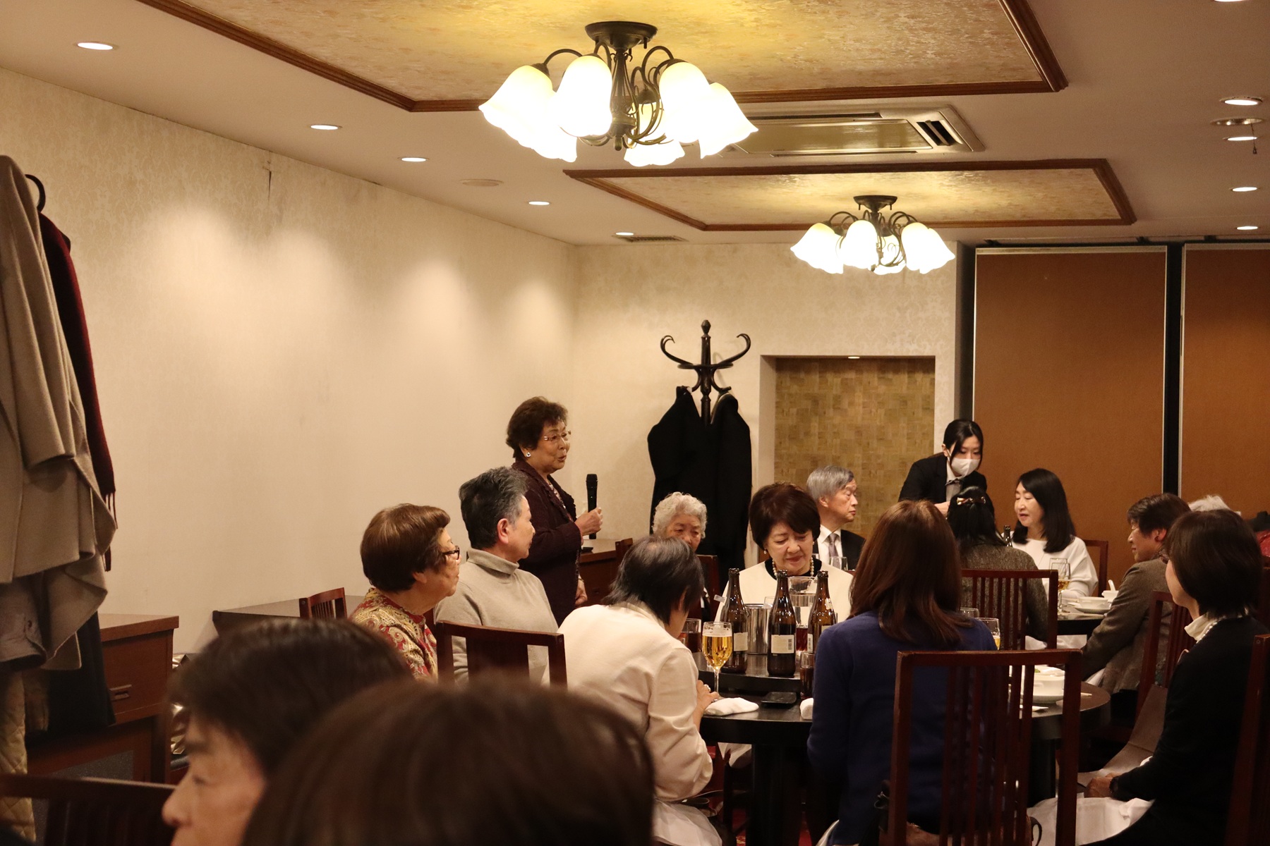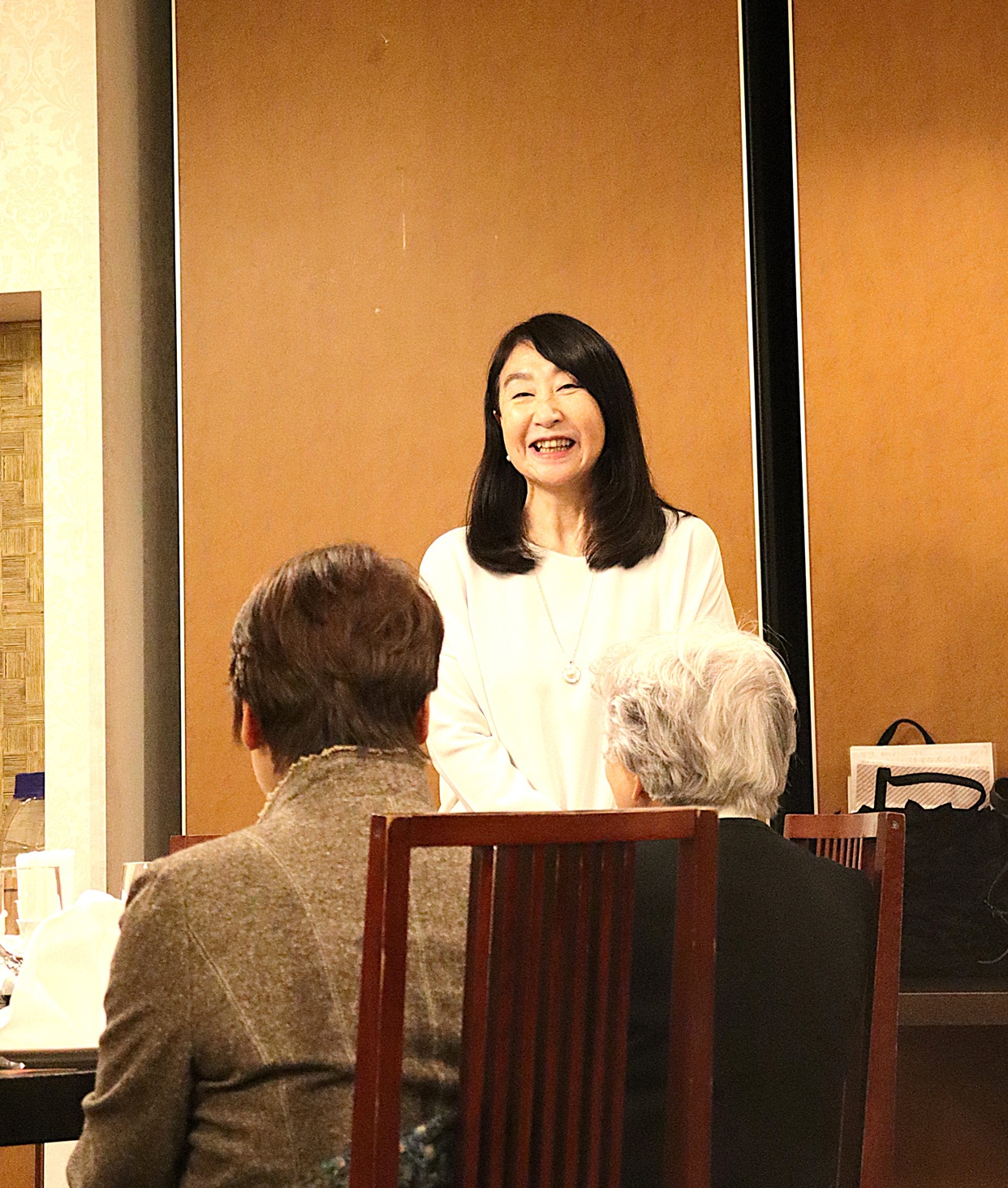 講演会後の70周年記念祝賀会では、会長後藤尚子の挨拶、そして山本勉先生からのご祝辞を頂戴いたしました。また、第一・第二師範会会員による70周年を迎えての想いを語るスピーチ、そして会長直筆デッサン画が当たる抽選会が催され、会場は大いに盛り上がりました。多くの会員が参加し、終始たいへん楽しい雰囲気の中で親睦を深める、素晴らしい記念行事となりました。