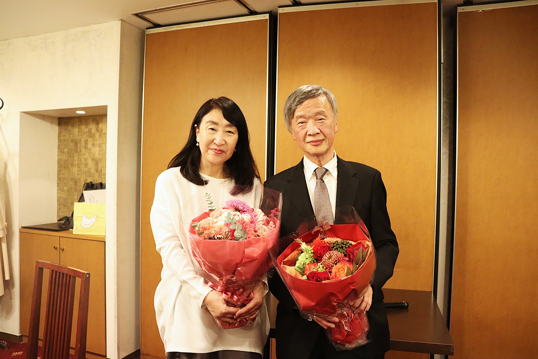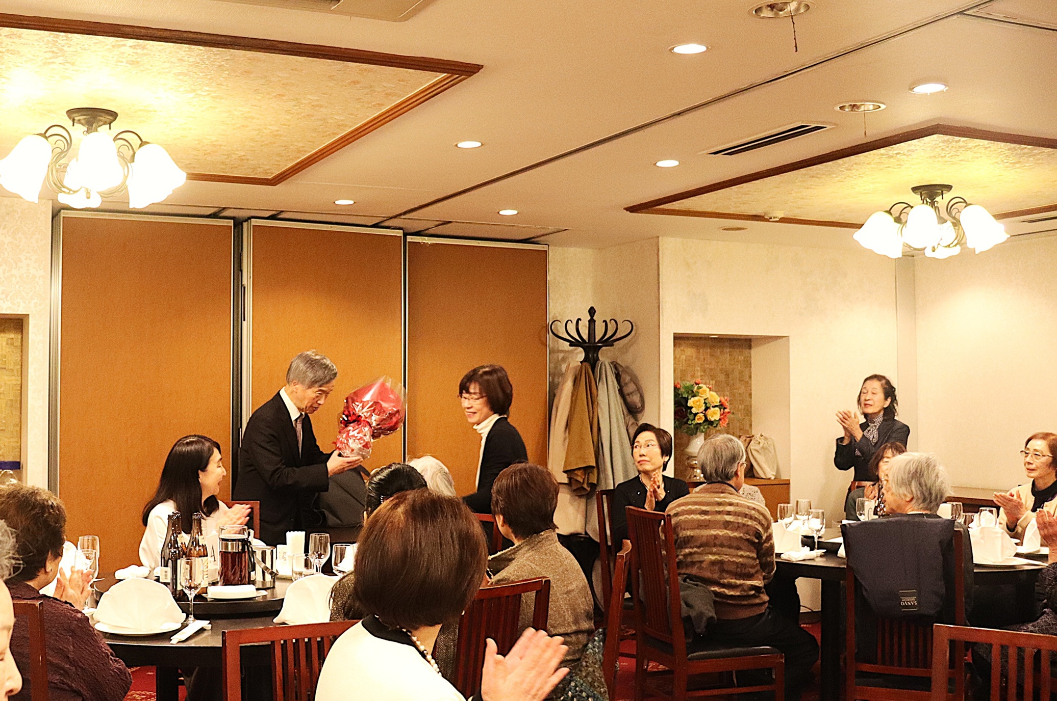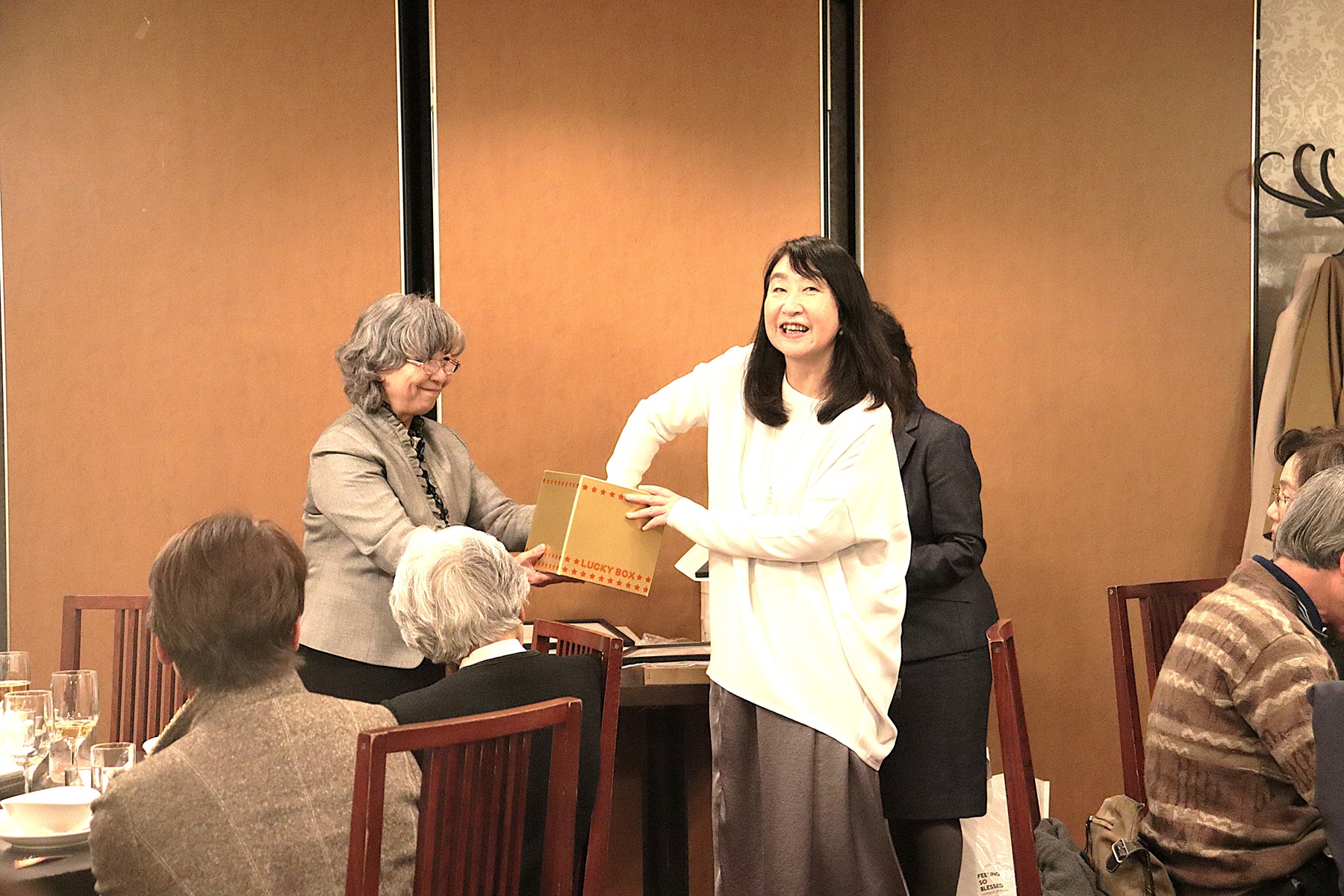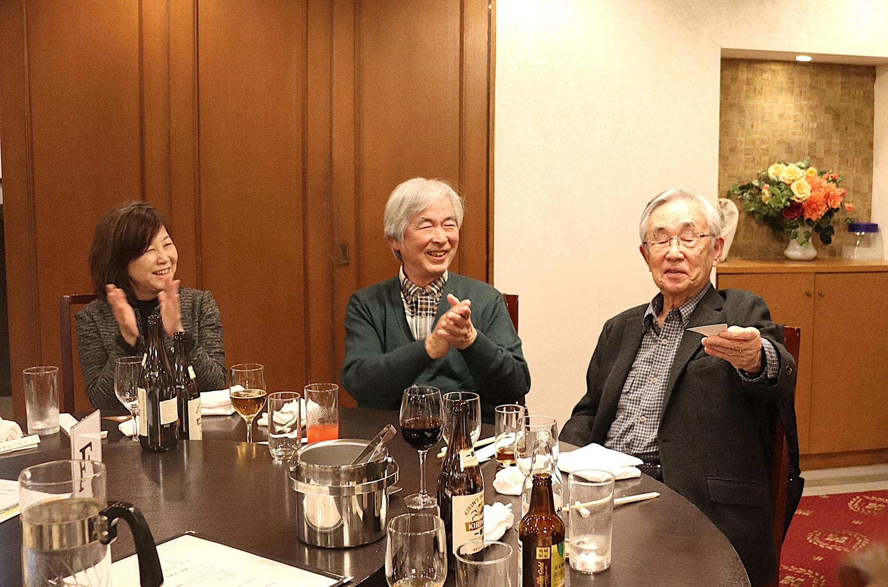 講演会後の70周年記念祝賀会では、会長後藤尚子の挨拶、そして山本勉先生からのご祝辞を頂戴いたしました。また、第一・第二師範会会員による70周年を迎えての想いを語るスピーチ、そして会長直筆デッサン画が当たる抽選会が催され、会場は大いに盛り上がりました。多くの会員が参加し、終始たいへん楽しい雰囲気の中で親睦を深める、素晴らしい記念行事となりました。